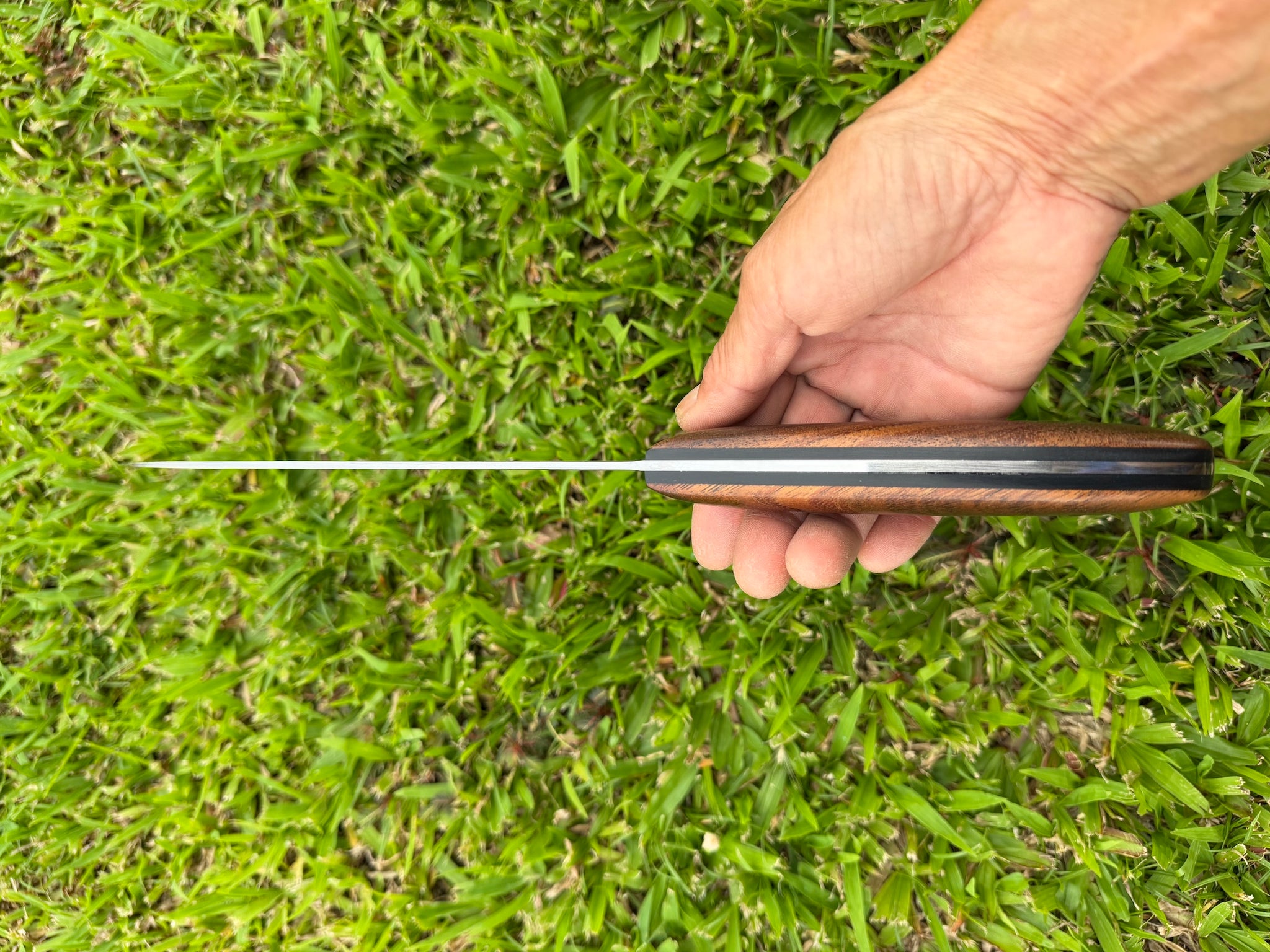 H.I.C.K.'s Chef knives are balanced for pinch hold. Throat of the handle allows the knife to sit securely in the hand even when it is held loosely. Signature convex grind reduces cutting resistance and gives its thin edge added stability.